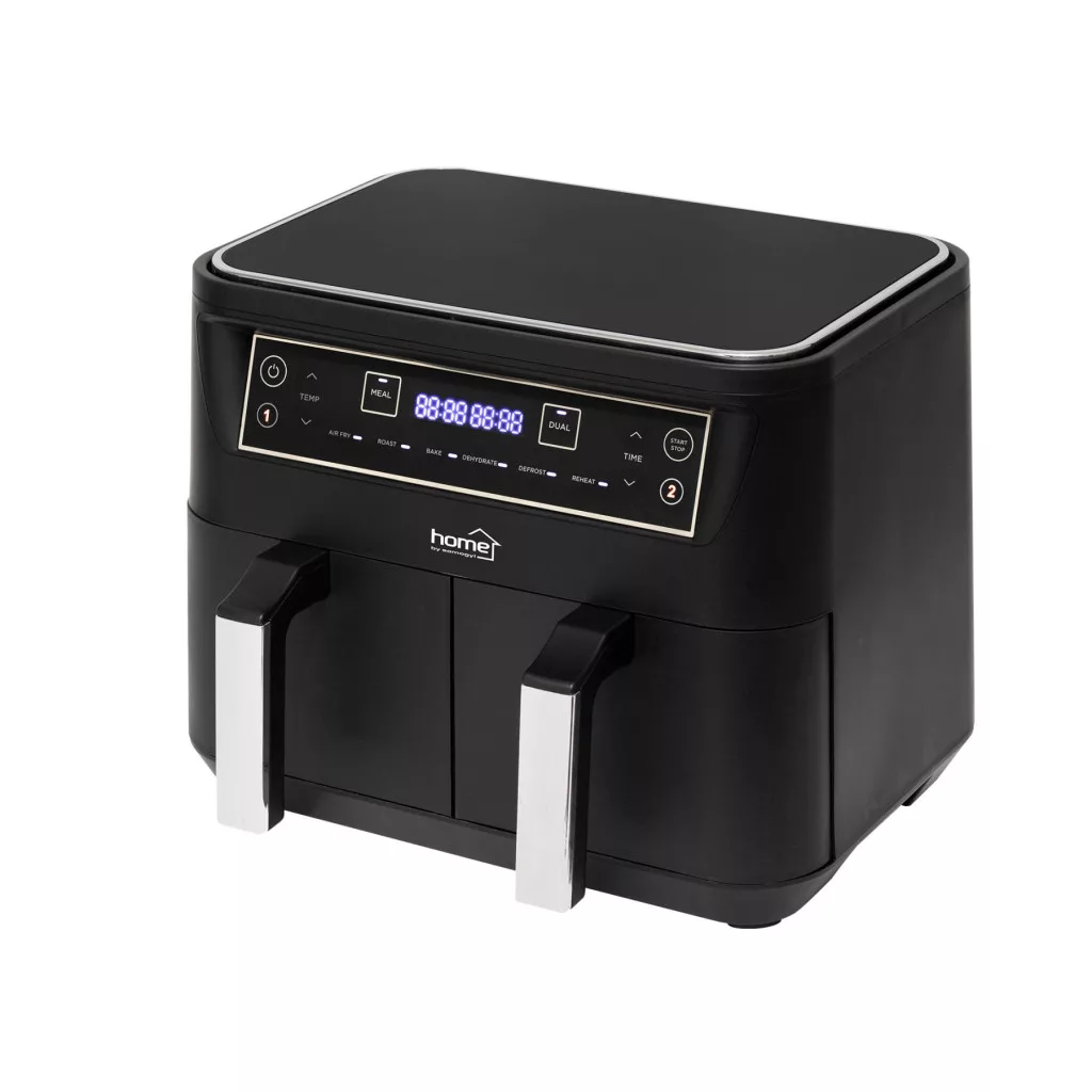 Home HG AF 24 air fryer, forrólevegős fritőz, 2 X 3,8 literes, 6-féle üzemmód, 2460 W, MEAL funkció, DUAL funkció, fekete