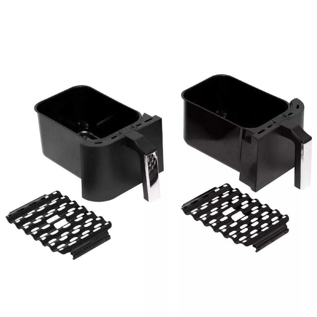 Ezzel a 2460 wattos teljesítményű készülékkel az ételek kívül ropogósak, belül pedig omlósak lesznek, és mindezt gyorsan, egyszerűen érheti el. A készülék két különálló, 3,8 literes kosárral rendelkezik, amelyek függetlenül is használhatók. A DUAL funkció lehetővé teszi, hogy ugyanazt az ételt nagyobb mennyiségben, két kosárban egyszerre készítse el, míg a MEAL funkció segítségével akár két különböző fogást is egyszerre süthet meg, így időt és energiát takaríthat meg. Az 6-féle üzemmód – forrólevegős sütés, pirítás, sütés, aszalás, kiolvasztás és újramelegítés – révén ez az air fryer számos konyhai funkciót kivált, és könnyedén alkalmazkodik minden ételtípushoz. A digitális vezérlésnek köszönhetően a hőmérséklet és a hátralévő idő is működés közben állítható, így bármikor módosíthat az elkészítési paramétereken. A kényelmes és intuitív kezelőfelület lehetővé teszi, hogy a beállításokat egyszerűen végezze el, így a sütési folyamat mindig az Ön irányítása alatt áll.