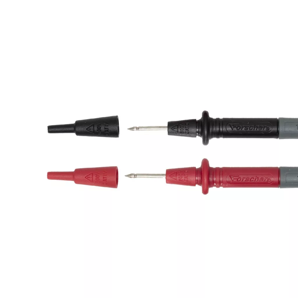 A mérőzsinór kombinált tapintócsúcsai eltávolítható szigetelő kupakokkal vannak ellátva, amelyek védelmet nyújtanak a véletlen érintkezések ellen. A szigetelő kupakok eltávolításával könnyedén elérhetővé válnak a szűk helyeken található mérési pontok, így még precízebb méréseket végezhet.