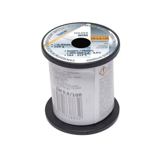 Home SW 0,8/100 forrasztóón, 0,8mm, 100g, európai gyártótól származó kiváló minőségű forrasztóón, összetétel: SN/PB: 60/40%, gyanta: 2,0%
