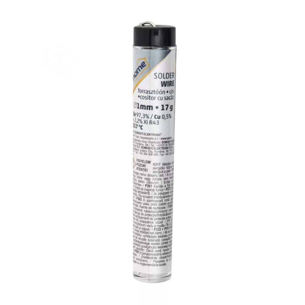 Home SWCU 1/17 forrasztóóntoll, átmérő 1mm, Sn/Cu: 97,3%/0,5%, gyanta: 2,2 %, nettó súly: 17 g, méret:∅17x91mm, ólommentes!