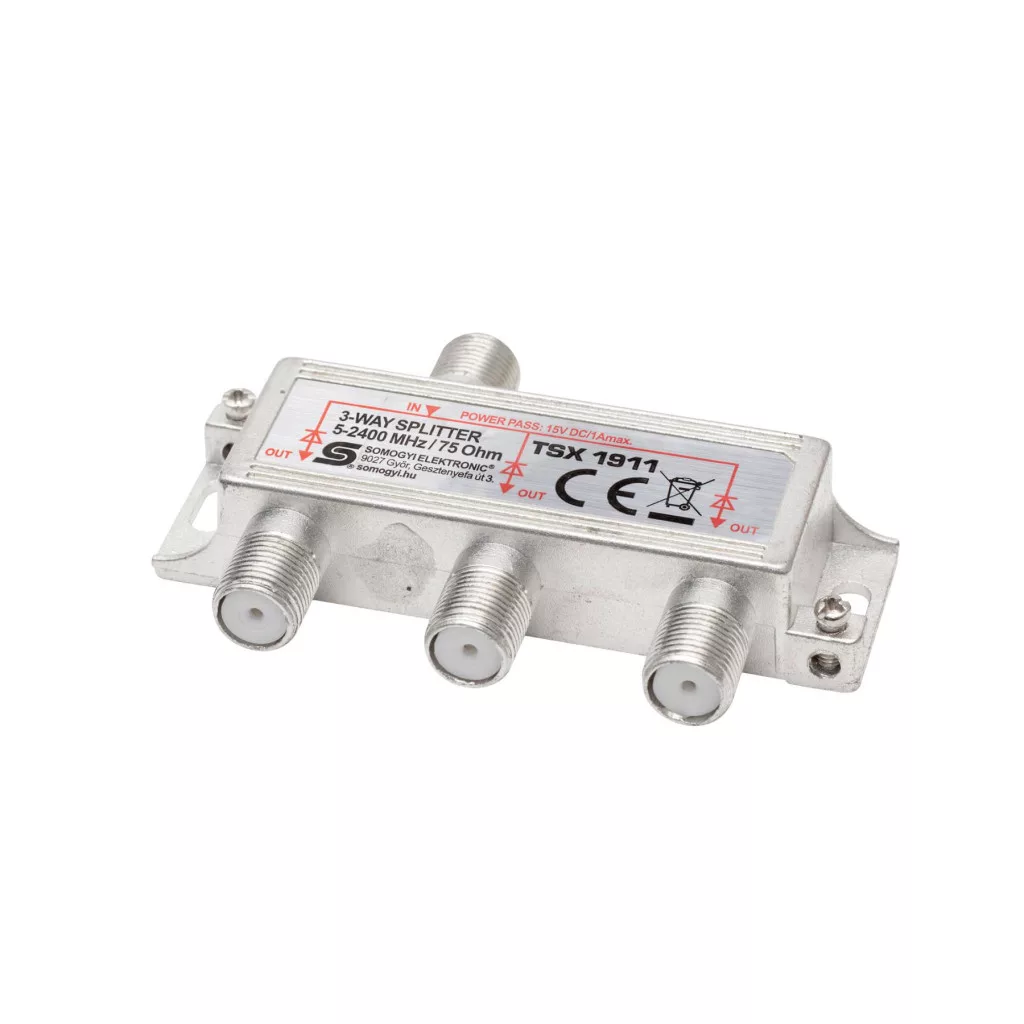 Home TSX 1911 F elosztó, HQ professzionális minőség, 75 Ohm, IP44, cink-ötvözet konstrukció, 5-2400 MHz, 3 utas, 1 bemenet, 3 kimenet