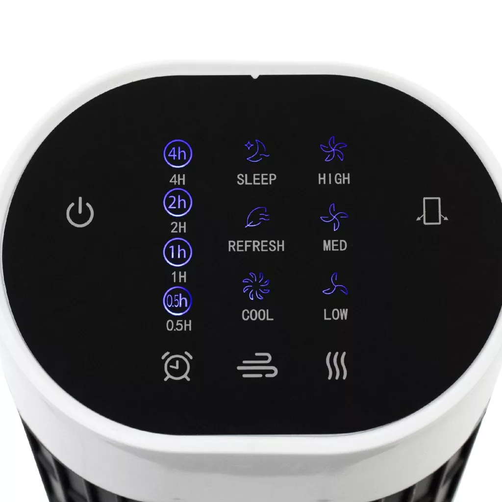 A nagy méretű kijelző könnyedén olvasható, így egyszerűen ellenőrizheti az aktuális beállításokat. A ventilátor érintőgombokkal és távirányítóval vezérelhető, ami maximális kényelmet biztosít, hiszen akár a kanapéról is szabályozhatja a készüléket. A kikapcsolás időzítés 0,5 és 7,5 óra között állítható, így Ön energiatakarékosan használhatja a készüléket, miközben nyugodtan pihenhet.