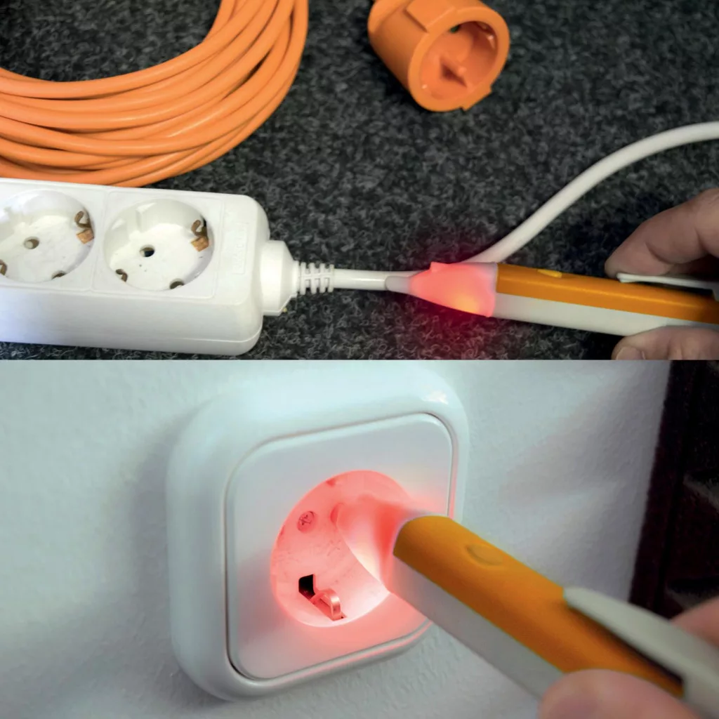 Ideális választás mindenféle elektromos hibakeresési feladathoz, legyen szó hosszabbítókról, elosztókról, fali csatlakozóaljzatokról, izzósorokról, lámpákról, vagy akár a készüléken és kapcsolószekrényen belüli kábelekről. Amint a készülék érzékeli a váltakozó feszültség jelenlétét, azonnal figyelmeztet a felhasználót szaggatott hangjelzéssel és villogó piros fény jelzéssel, így biztosítva az elektromos rendszerek biztonságos vizsgálatát.