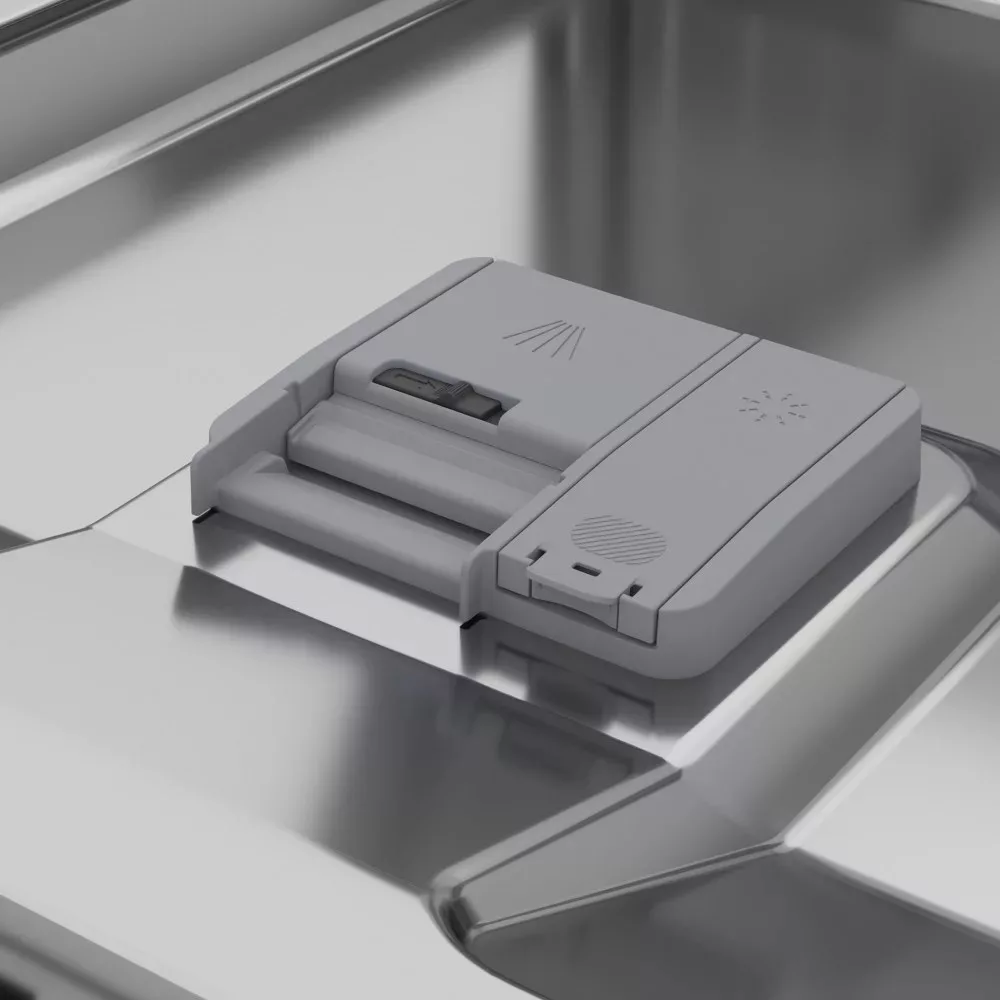 Az evőeszköz tálca elegendő helyet biztosít az evőeszközök és az apróbb dolgok elhelyezésére és saját permetezési szinttel is rendelkezik. Ennek köszönhetően az alsó kosárban több hely szabadul fel a nagyobb edények számára.