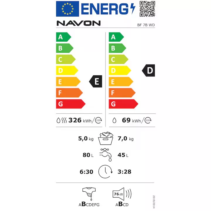Navon BF 7B WD - Mosó-szárítógép, 7/5 kg, 1200 fordulat/perc