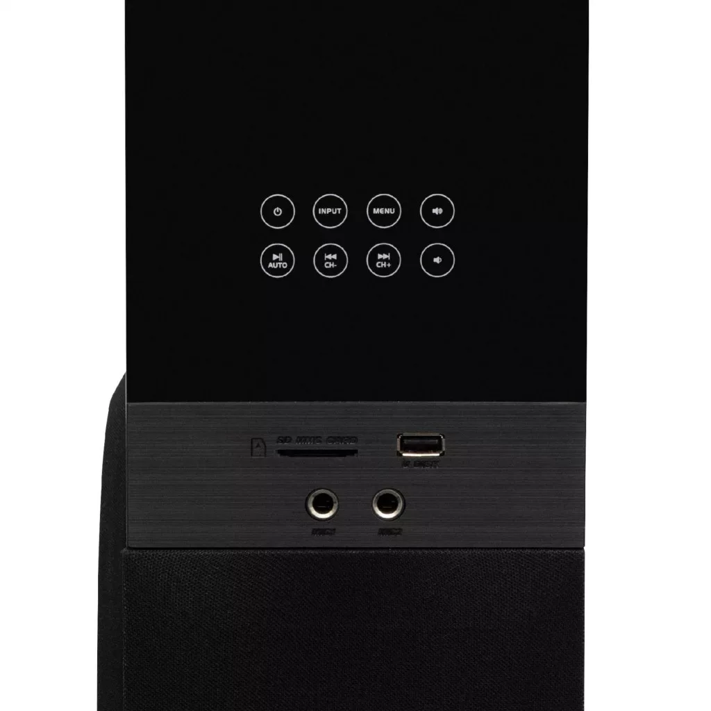 Az elegáns MDF fa konstrukció nemcsak esztétikus, de robusztus is, így hosszú távon is megbízhatóan működik. A LED kijelző fényereje állítható, a rendszer pedig érintőgombokkal is vezérelhető, ami modern és könnyen kezelhető felhasználói élményt biztosít. A csomag tartalmaz egy távirányítót, amely két AAA elemmel működik (nem tartozék), valamint a szükséges audio csatlakozókábelt és dísztalpakat, amelyek a hangdobozok stabilitásáról gondoskodnak.
