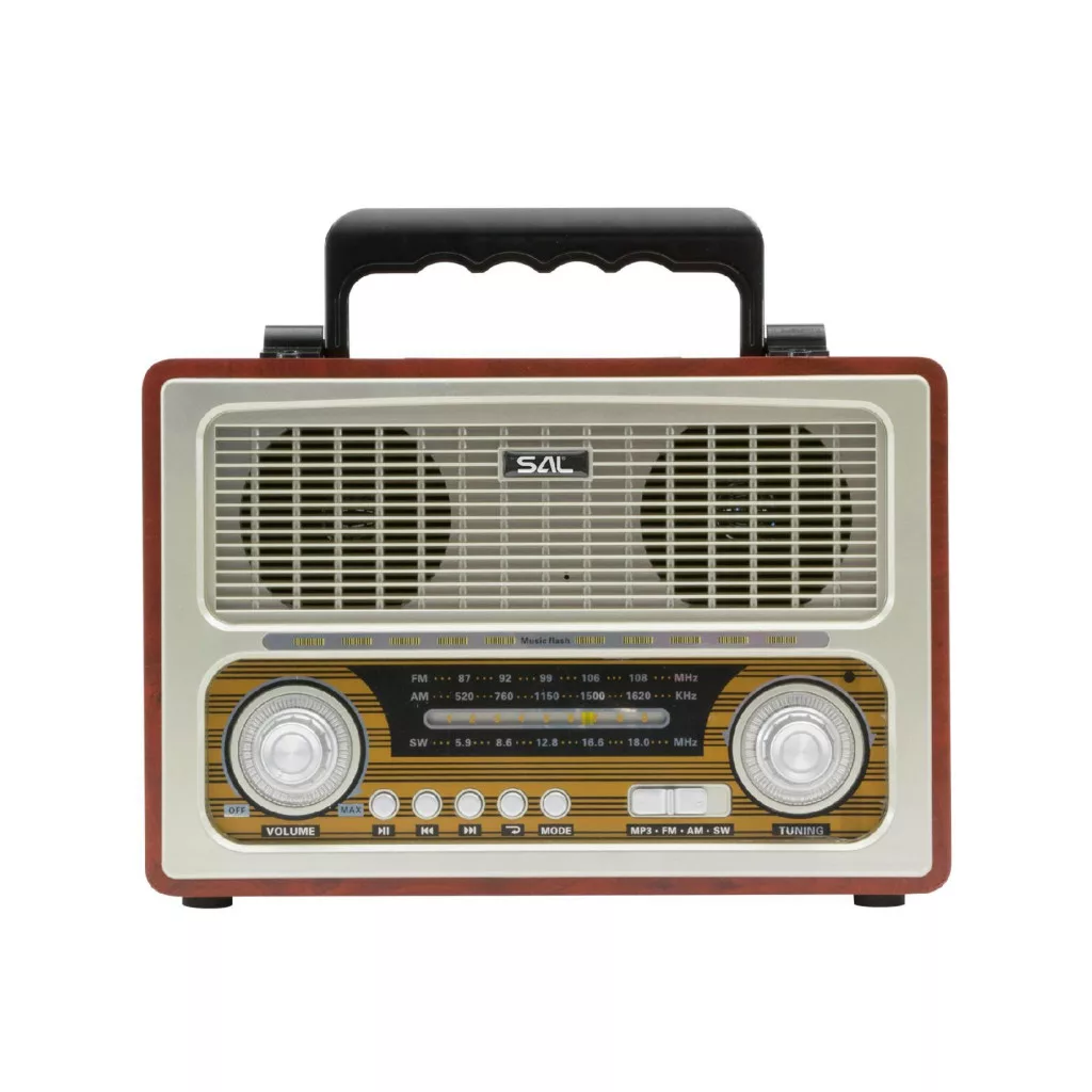 A SAL RRT3 retro táskarádió egy 4 az 1-ben multimédia eszköz, amely ötvözi a klasszikus dizájnt a modern technológiával. A vezeték nélküli Bluetooth kapcsolat, az MP3 lejátszási lehetőség, az AUX bemenet és a 3-sávos AM-FM-SW rádió gondoskodik arról, hogy minden zenei igényt kielégítsen. Az elegáns fa hangdoboz és a hordfül kényelmes használatot és esztétikus megjelenést biztosít.