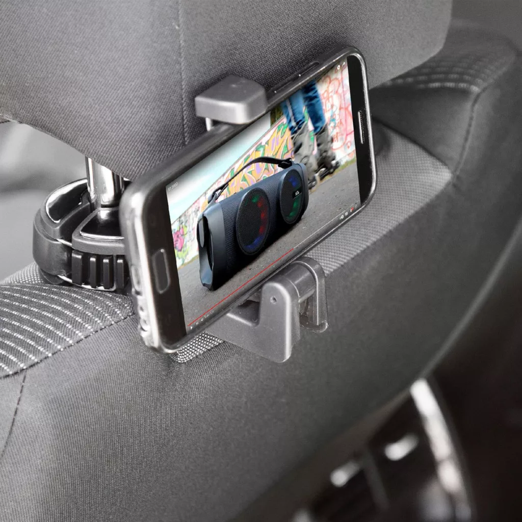 Ideális, ha kényelmes megoldást keres arra, hogy a fejtámla mögött rögzítse a telefont vagy a hátul utazók számára biztosítson egy stabil tartót, amely megkönnyíti a filmnézést vagy üzenetek olvasását. A tartó a fejtámla rúdjára rögzíthető, és körbe forgatható, így a ráakasztott csomag elhelyezhető az ülés támlája mögött vagy akár előtte is. Tökéletes választás, ha szeretné biztonságosan tárolni táskáját, esernyőjét, italt vagy élelmiszert, így a jármű beltere rendezett maradhat utazás közben.