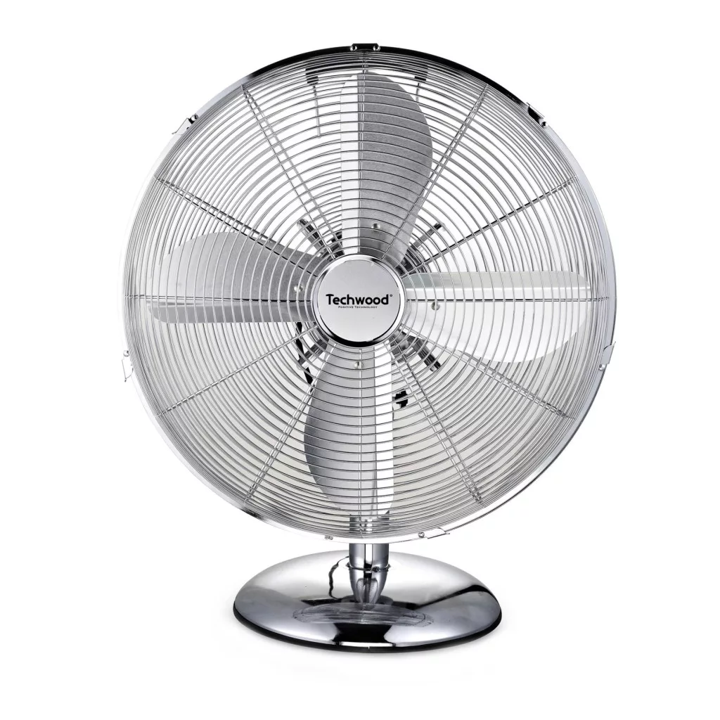 A Techwood TVI-335 fém asztali ventilátor stílusos megjelenésével és meggyőző teljesítményével kiváló megoldást kínál otthonába vagy irodájába. 30 cm-es lapátátmérőjének és 45 wattos teljesítményének köszönhetően hatékony légáramlást biztosít, míg krómozott fémháza időtálló eleganciát sugároz.