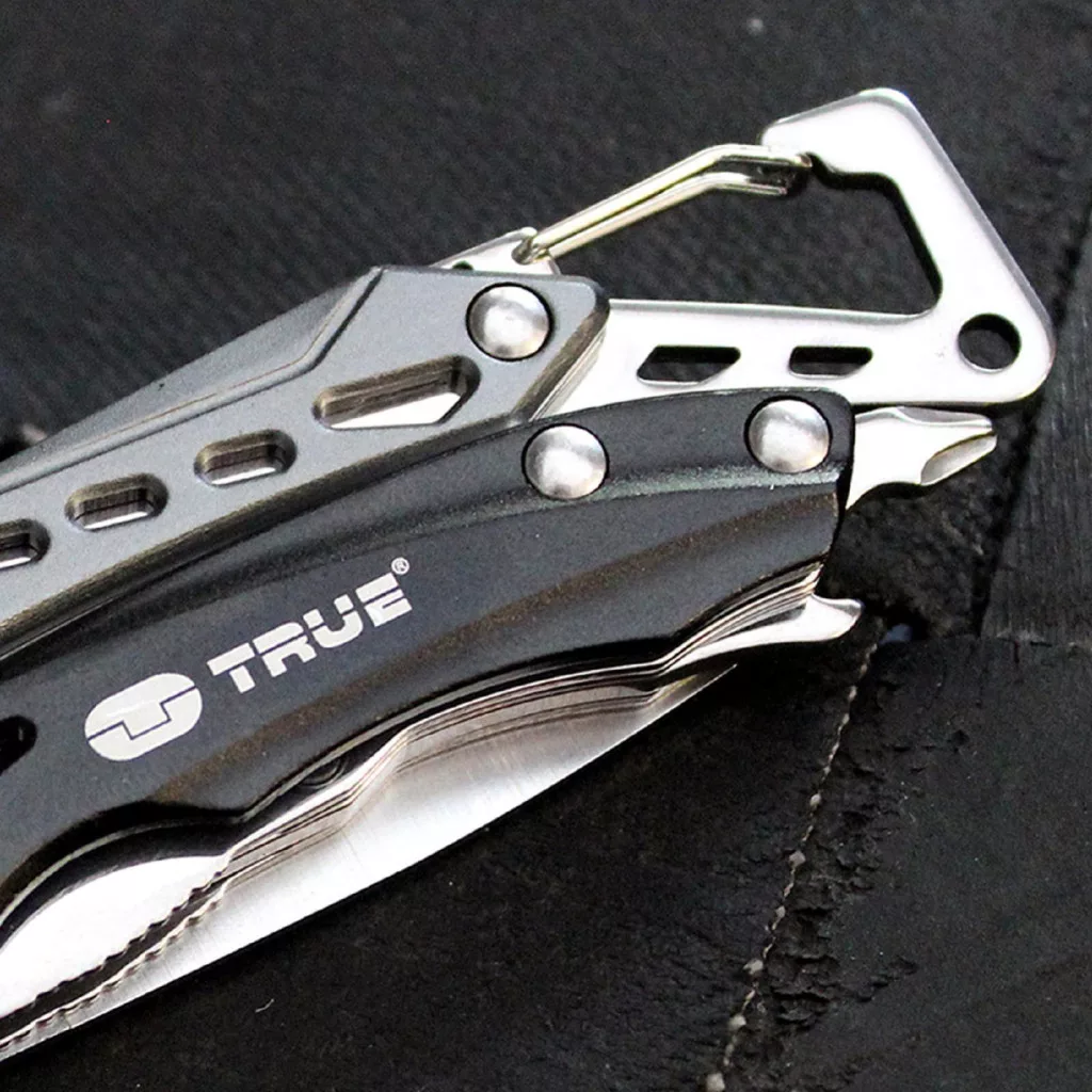 A True Utility Seven TU180K több mint egy szokásos multifunkciós szerszám, ez egy igazi mindenes, amely a mindennapi kihívásokhoz készült. Az eszköz magában foglal egy rugós, rozsdamentes acélból készült harapófogót, drótvágót, csillagfejű és laposfejű csavarhúzót, továbbá egy kés, fűrész, sörnyitó, karabiner és reszelő is helyet kapott benne. A szerszámok rozsdamentes acélból készültek, így garantált az időtállóság és a megbízhatóság.